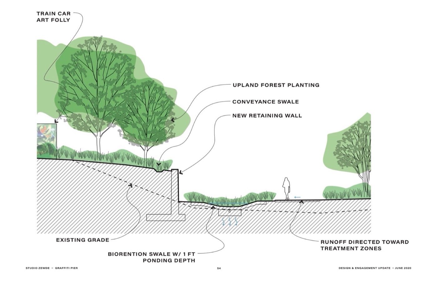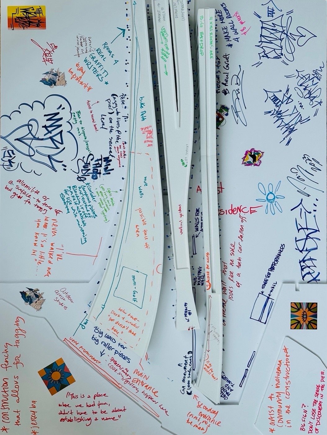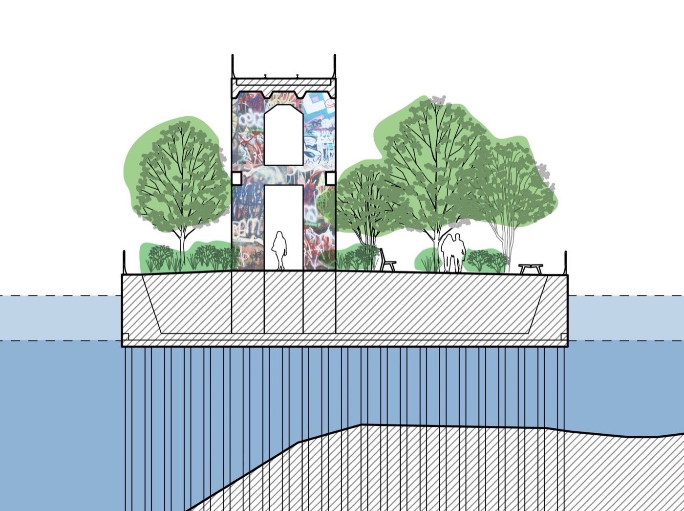 The next evolution of the site will ensure the continuation of the stories, meanings, and cultural production embedded in the site today. In this spirit, the Delaware River Waterfront Conservancy has commissioned Studio Zewde to develop a sensitive approach to concept design that elevates access and legibility of the site, crafts an adaptable, resilient shoreline, and protects the site’s unique qualities. The design process will include thorough community engagement of the artists and city dwellers that make Graffiti Pier what it is today, as well as the site’s adjacent residents.