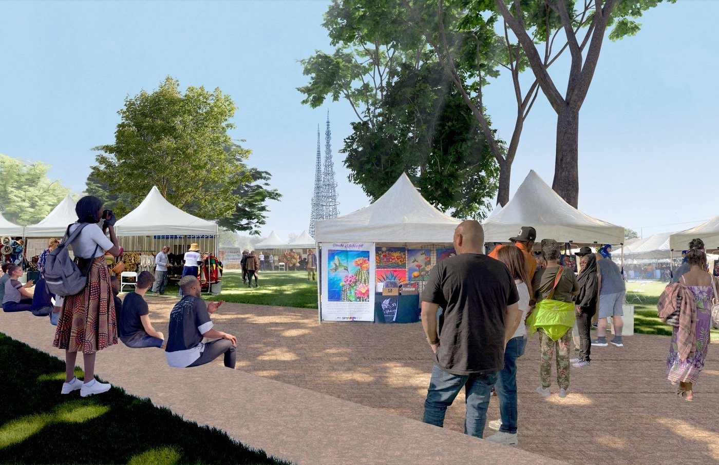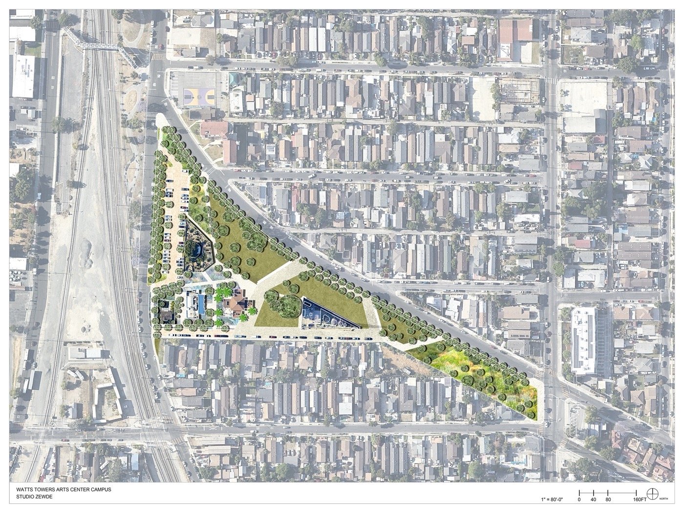 The Los Angeles Neighborhood Land Trust (LANLT) and the community have engaged in over a decade of project development. Understanding this monumental effort, the Studio Zewde team is building from the previous master plan and engagement efforts, working to confirm site programming, narratives, and the ways that this site can support the Watts Towers, the Watts Towers Arts Center, and its community.